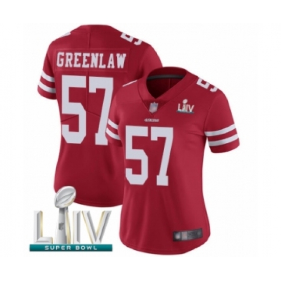 Women's San Francisco 49ers #57 Dre Greenlaw Red Team Color Vapor Untouchable Limited Player Super Bowl LIV Bound Football Jersey