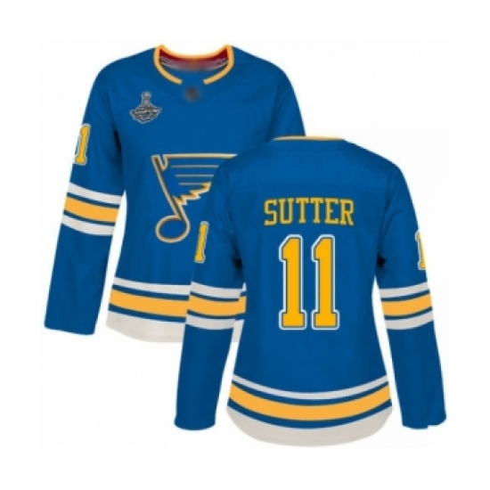 Women's St. Louis Blues #11 Brian Sutter Authentic Navy Blue Alternate 2019 Stanley Cup Champions Hockey Jersey