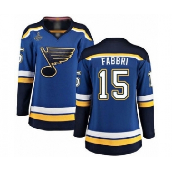 >Women's St. Louis Blues #15 Robby Fabbri Fanatics Branded Royal Blue Home Breakaway 2019 Stanley Cup Champions Hockey Jersey