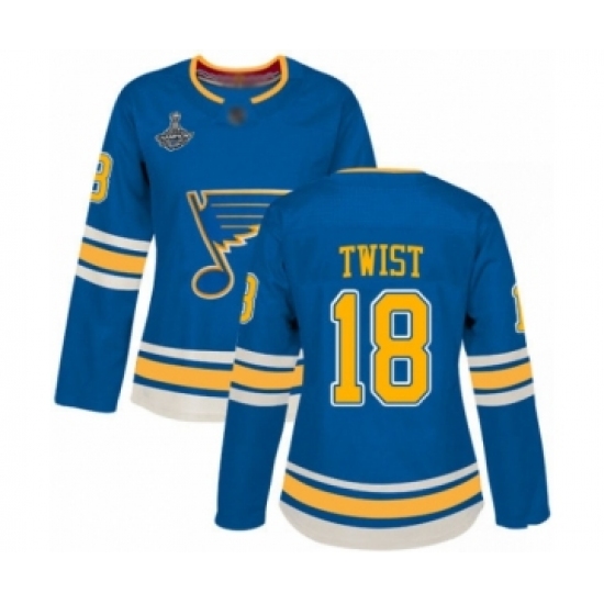 Women's St. Louis Blues #18 Tony Twist Authentic Navy Blue Alternate 2019 Stanley Cup Champions Hockey Jersey