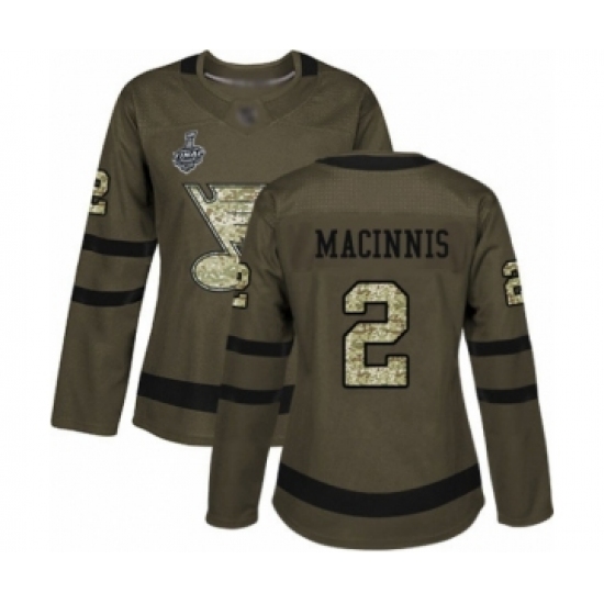 Women's St. Louis Blues #2 Al Macinnis Authentic Green Salute to Service 2019 Stanley Cup Final Bound Hockey Jersey