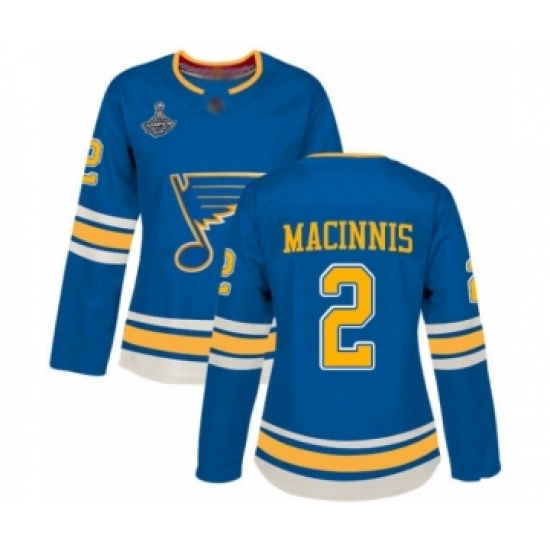 Women's St. Louis Blues #2 Al Macinnis Authentic Royal Blue Home 2019 Stanley Cup Final Bound Hockey Jersey
