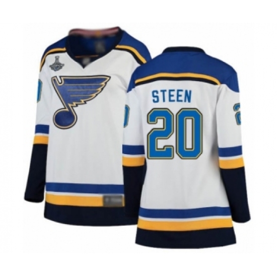 Women's St. Louis Blues #20 Alexander Steen Authentic White Away 2019 Stanley Cup Champions Hockey Jersey
