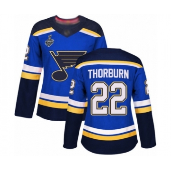 Women's St. Louis Blues #22 Chris Thorburn Authentic Royal Blue Home 2019 Stanley Cup Final Bound Hockey Jersey