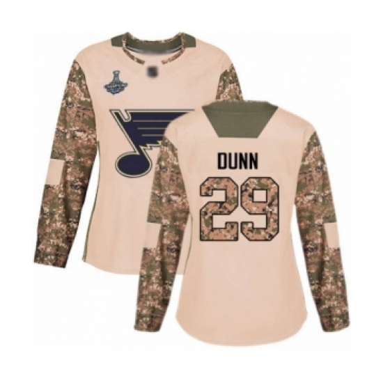 Women's St. Louis Blues #29 Vince Dunn Authentic Camo Veterans Day Practice 2019 Stanley Cup Champions Hockey Jersey