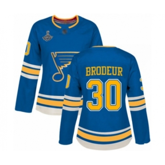 Women's St. Louis Blues #30 Martin Brodeur Authentic Navy Blue Alternate 2019 Stanley Cup Champions Hockey Jersey