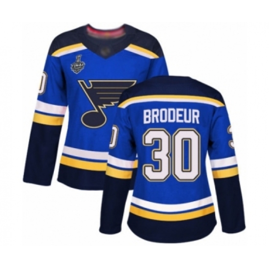 Women's St. Louis Blues #30 Martin Brodeur Authentic Royal Blue Home 2019 Stanley Cup Final Bound Hockey Jersey