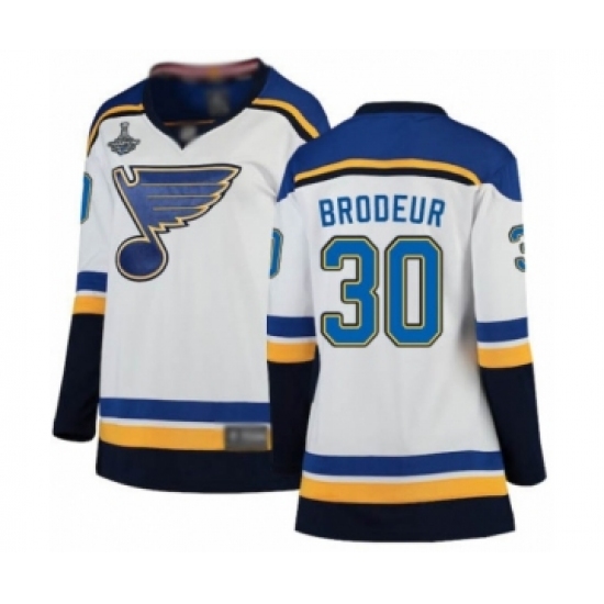 Women's St. Louis Blues #30 Martin Brodeur Fanatics Branded White Away Breakaway 2019 Stanley Cup Champions Hockey Jersey