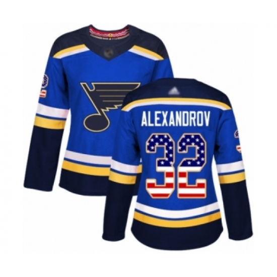 Women's St. Louis Blues #32 Nikita Alexandrov Authentic Blue USA Flag Fashion Hockey Jersey
