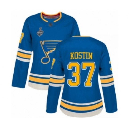 Women's St. Louis Blues #37 Klim Kostin Authentic Royal Blue Home 2019 Stanley Cup Final Bound Hockey Jersey