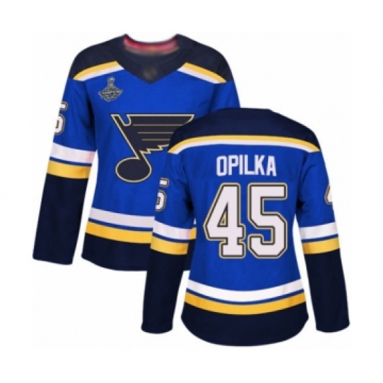 Women's St. Louis Blues #45 Luke Opilka Authentic Royal Blue Home 2019 Stanley Cup Champions Hockey Jersey