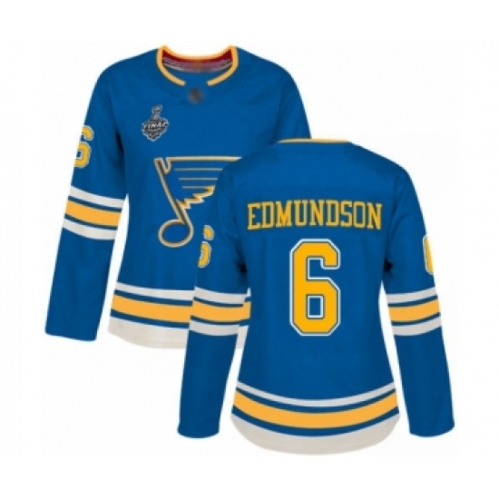 Women's St. Louis Blues #6 Joel Edmundson Authentic Navy Blue Alternate 2019 Stanley Cup Final Bound Hockey Jersey