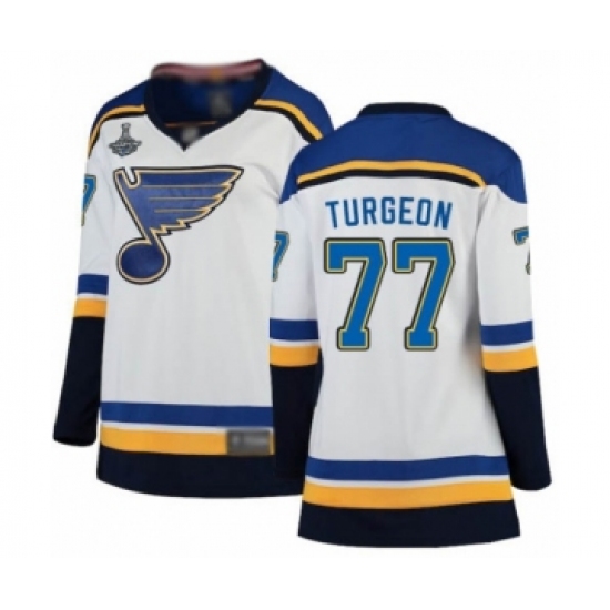 Women's St. Louis Blues #77 Pierre Turgeon Fanatics Branded White Away Breakaway 2019 Stanley Cup Champions Hockey Jersey