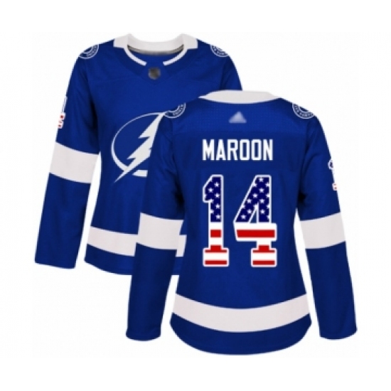 Women's Tampa Bay Lightning #14 Patrick Maroon Authentic Blue USA Flag Fashion Hockey Jersey