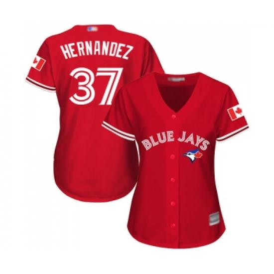 >Women's Toronto Blue Jays #37 Teoscar Hernandez Replica Scarlet Alternate Baseball Jersey