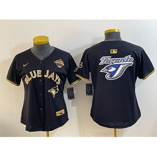 >Women's Toronto Blue Jays Team Big Logo Black Gold 2025 American League Champions Limited Stitched Baseball Jersey(Run Small)