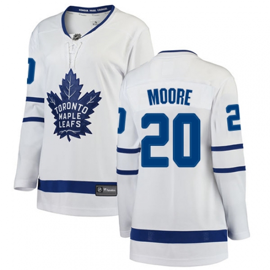 Home>NHL>Toronto Maple Leafs>Dominic Moore>Women's Toronto Maple Leafs #20 Dominic Moore Authentic White Away Fanatics Branded Breakaway NHL Jersey