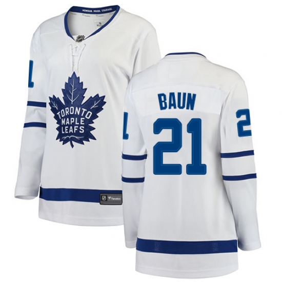 Home>NHL>Toronto Maple Leafs>Bobby Baun>Women's Toronto Maple Leafs #21 Bobby Baun Authentic White Away Fanatics Branded Breakaway NHL Jersey