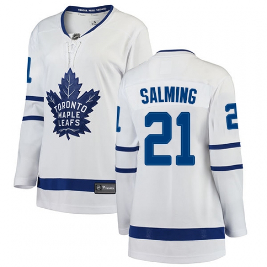 Women's Toronto Maple Leafs #21 Borje Salming Authentic White Away Fanatics Branded Breakaway NHL Jersey