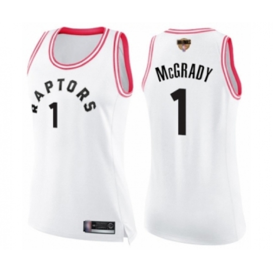 Women's Toronto Raptors #1 Tracy Mcgrady Swingman White Pink Fashion 2019 Basketball Finals Champions Jersey