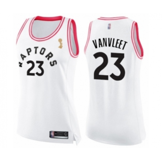 >Women's Toronto Raptors #23 Fred VanVleet Swingman White Pink Fashion 2019 Basketball Finals Champions Jersey