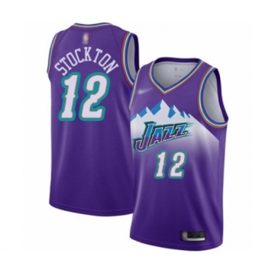 Women's Utah Jazz #12 John Stockton Swingman Purple Hardwood Classics Basketball Jersey