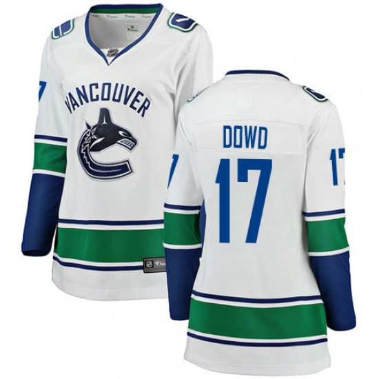 Women's Vancouver Canucks #17 Nic Dowd Fanatics Branded White Away Breakaway NHL Jerse