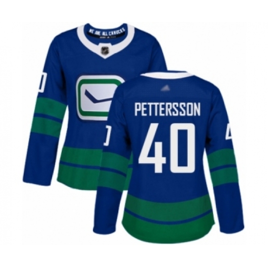 >Women's Vancouver Canucks #40 Elias Pettersson Authentic Royal Blue Alternate Hockey Jersey