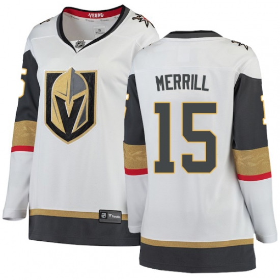 Women's Vegas Golden Knights #15 Jon Merrill Authentic White Away Fanatics Branded Breakaway NHL Jerse
