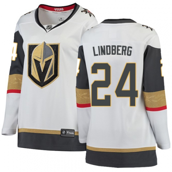 Women's Vegas Golden Knights #24 Oscar Lindberg Authentic White Away Fanatics Branded Breakaway NHL Jersey