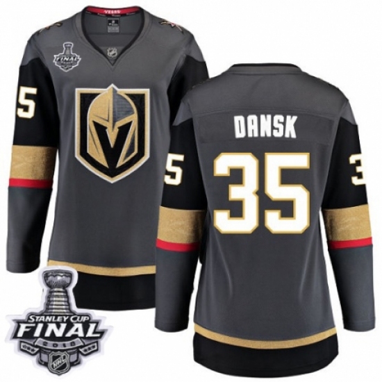 Women's Adidas Vegas Golden Knights #35 Oscar Dansk Authentic Gray Home 2018 Stanley Cup Final NHL Jersey