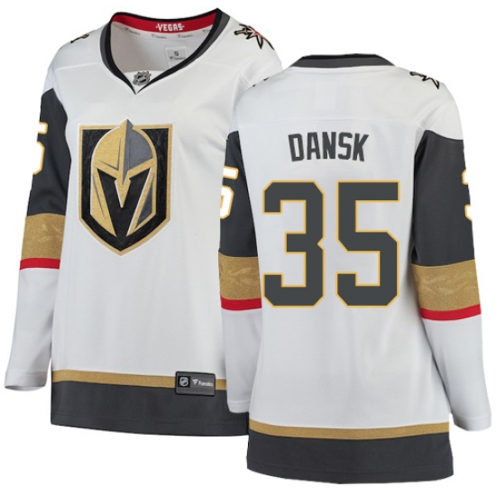 >Women's Vegas Golden Knights #35 Oscar Dansk Authentic White Away Fanatics Branded Breakaway NHL Jersey