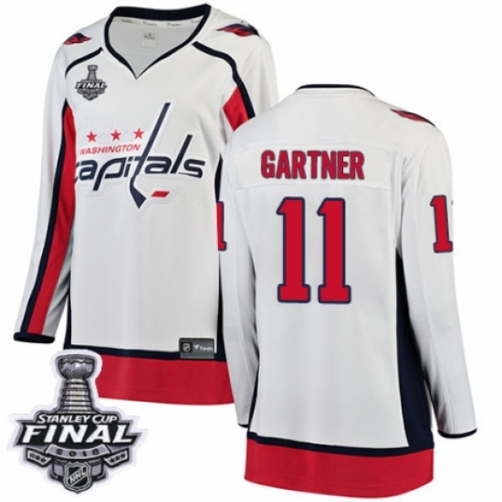 Women's Adidas Washington Capitals #11 Mike Gartner Authentic White Away 2018 Stanley Cup Final NHL Jersey