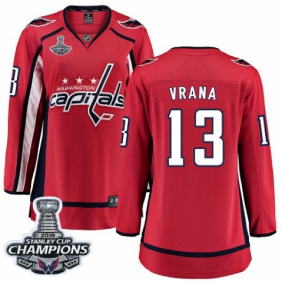 Women's Washington Capitals #13 Jakub Vrana Fanatics Branded Red Home Breakaway 2018 Stanley Cup Final Champions NHL Jersey