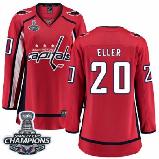 Women's Washington Capitals #20 Lars Eller Fanatics Branded Red Home Breakaway 2018 Stanley Cup Final Champions NHL Jersey