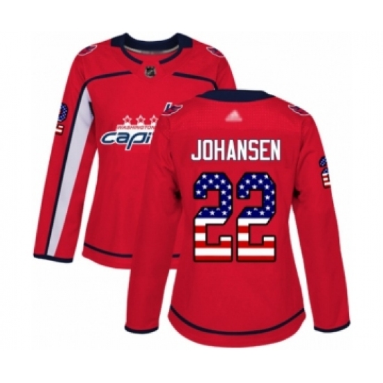 >Women's Washington Capitals #22 Lucas Johansen Authentic Red USA Flag Fashion Hockey Jersey