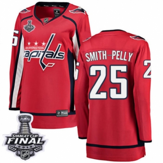 Women's Washington Capitals #25 Devante Smith-Pelly Fanatics Branded Red Home Breakaway 2018 Stanley Cup Final NHL Jersey