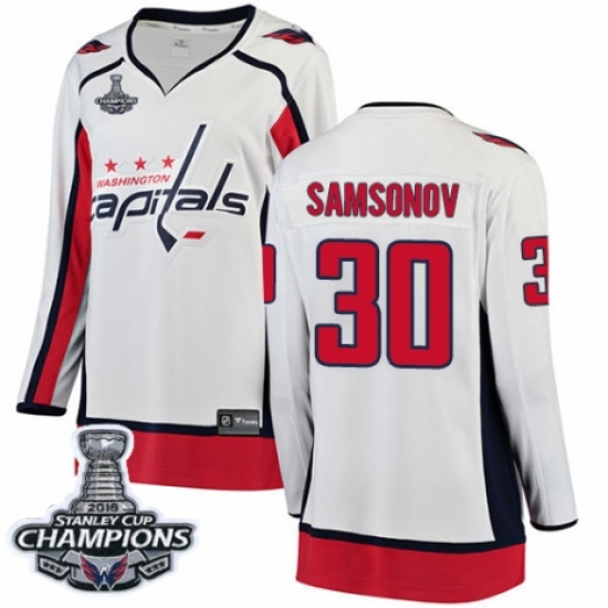 Women's Washington Capitals #30 Ilya Samsonov Fanatics Branded White Away Breakaway 2018 Stanley Cup Final Champions NHL Jersey