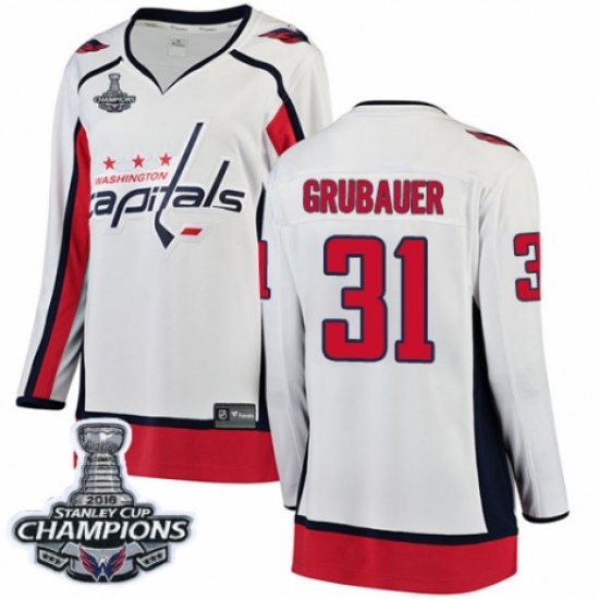 Women's Washington Capitals #31 Philipp Grubauer Fanatics Branded White Away Breakaway 2018 Stanley Cup Final Champions NHL Jersey