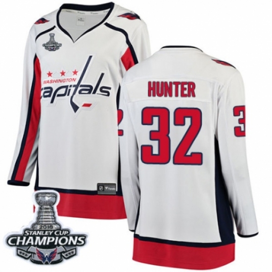 Women's Adidas Washington Capitals #32 Dale Hunter Authentic White Away 2018 Stanley Cup Final Champions NHL Jersey