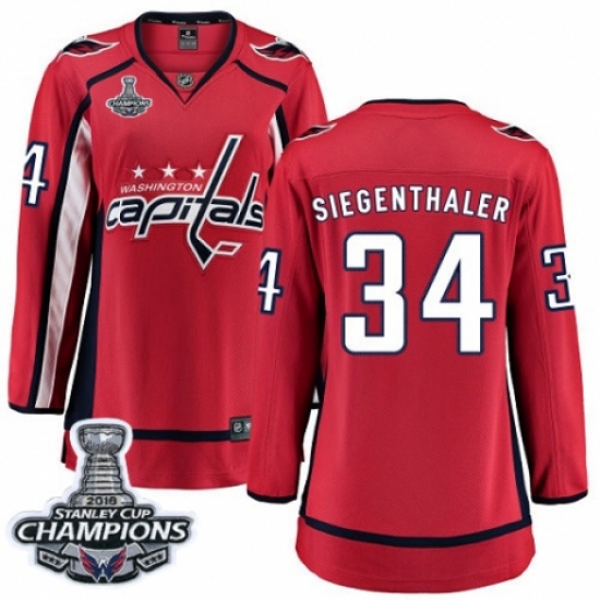 Women's Washington Capitals #34 Jonas Siegenthaler Fanatics Branded Red Home Breakaway 2018 Stanley Cup Final Champions NHL Jersey