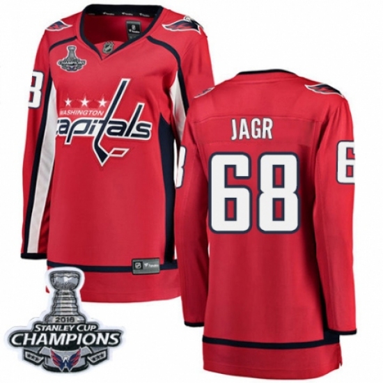 Women's Washington Capitals #68 Jaromir Jagr Fanatics Branded Red Home Breakaway 2018 Stanley Cup Final Champions NHL Jersey