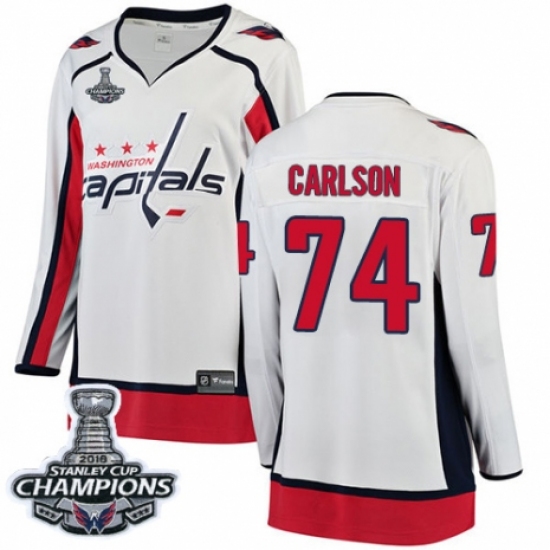 Women's Washington Capitals #74 John Carlson Fanatics Branded White Away Breakaway 2018 Stanley Cup Final Champions NHL Jersey