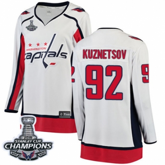 Women's Washington Capitals #92 Evgeny Kuznetsov Fanatics Branded White Away Breakaway 2018 Stanley Cup Final Champions NHL Jersey