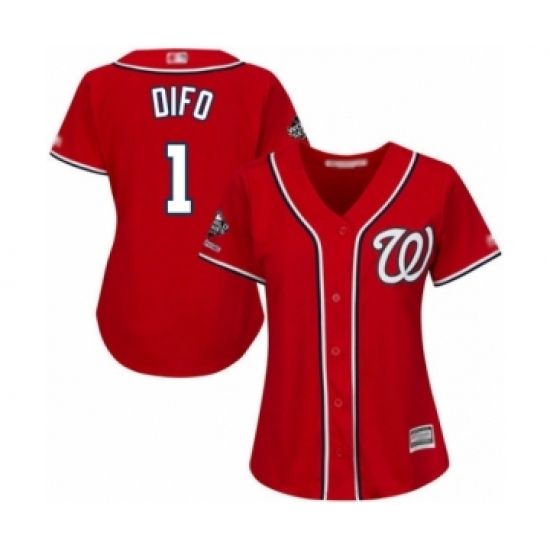 Women's Washington Nationals #1 Wilmer Difo Authentic Red Alternate 1 Cool Base 2019 World Series Champions Baseball Jersey