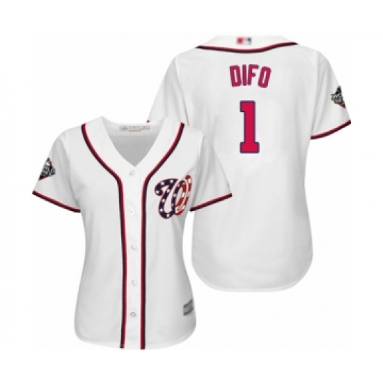Women's Washington Nationals #1 Wilmer Difo Authentic White Home Cool Base 2019 World Series Bound Baseball Jersey