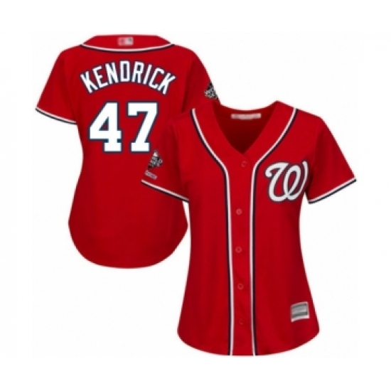 Women's Washington Nationals #47 Howie Kendrick Authentic Red Alternate 1 Cool Base 2019 World Series Champions Baseball Jersey