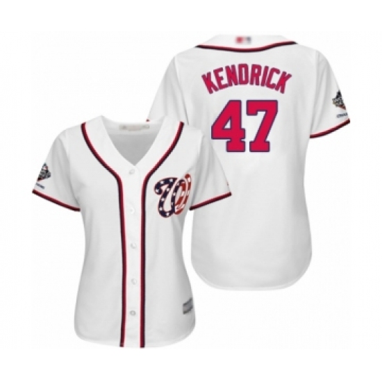 Women's Washington Nationals #47 Howie Kendrick Authentic White Home Cool Base 2019 World Series Champions Baseball Jersey