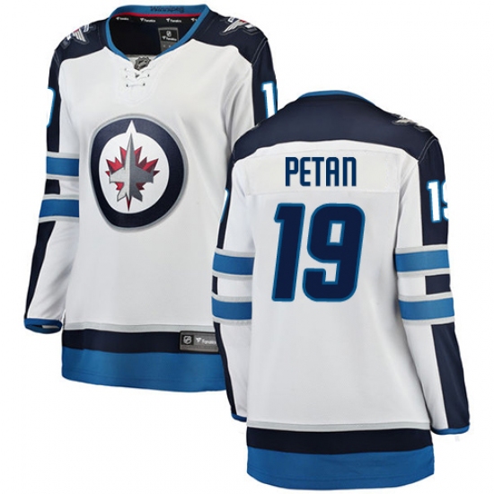 Home>NHL>Winnipeg Jets>Nic Petan>Women's Winnipeg Jets #19 Nic Petan Fanatics Branded White Away Breakaway NHL Jersey