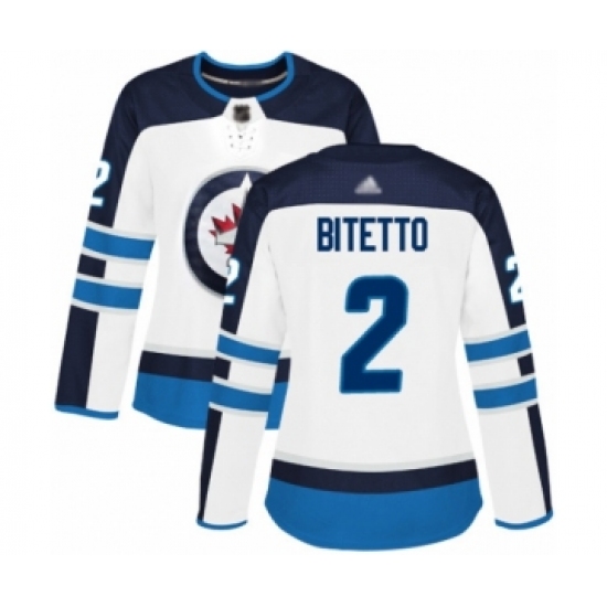 Women's Winnipeg Jets #2 Anthony Bitetto Authentic White Away Hockey Jersey